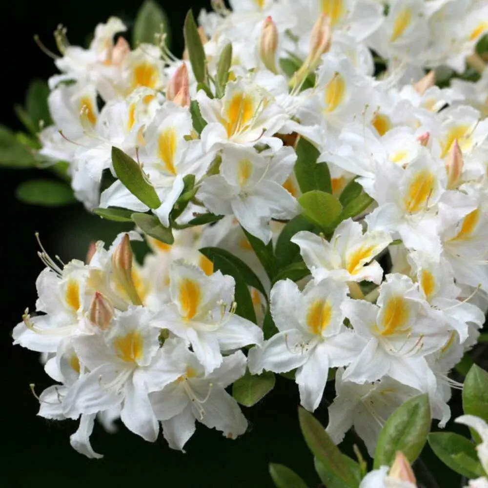 Азалия Шниголд - листопадный кустарник. Крона раскидистая, хорошая ветвистость. Высота 1,5-2 м. Цветы крупные, диаметром от 7,5 до 10 см. Бутоны окрашены в кремово-белый цвет, а распустившиеся цветы — белые с золотыми пятнами. Форма цветов может быть колокольчиковидной или чашевидной. Кистевидные соцветия содержат от 9 до 12 цветов. Листья яйцевидной формы, с острым кончиком, хорошо видимыми прожилками. Весной распускаются в бронзовых тонах, а затем становятся тёмно-зелёными. Осенью приобретают малиново-красную окраску, которая затем переходит в оранжево-жёлтую. Необходима формирующая обрезка после цветения.