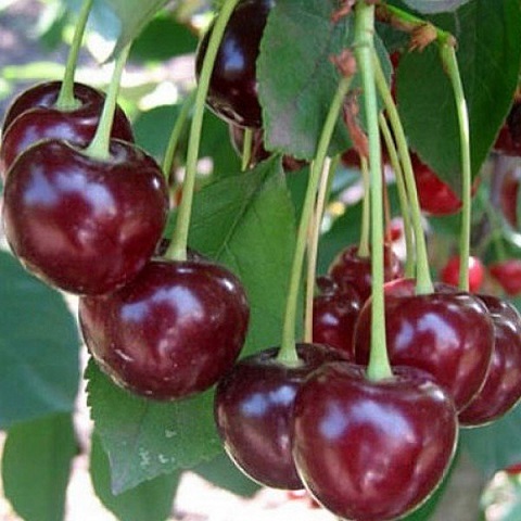 Плоды: Плоды крупные, массой 7–9 г, округлой слегка сплюснутой формы, насыщенно тёмно-красные. Мякоть сочная, ароматная, с бархатистой текстурой и сочетанием сладости и кислинки. Косточка маленькая, хорошо отделяется от мякоти.