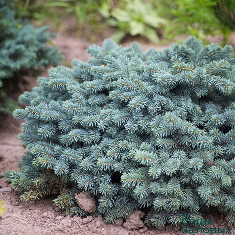 Хвоя: серебристо-сизая, до 1,5 см, молодая хвоя имеет ярко-голубой цвет. Иголки толстые мягкие на коротких плотно расположенных побегах.