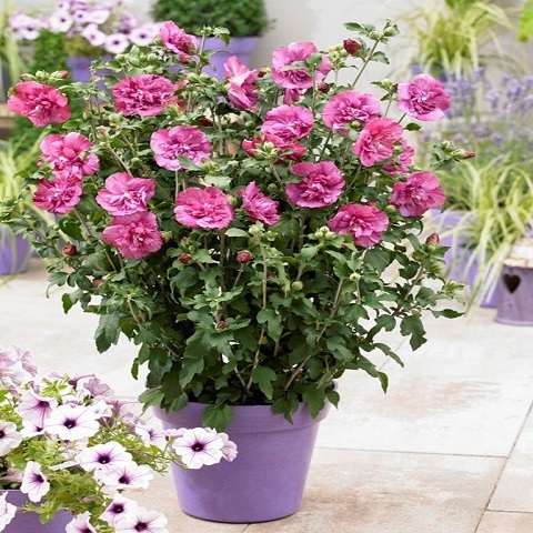 Гибискус сирийский Маджента Шифон- это эффектный и элегантный кустарник, который станет настоящим украшением вашего сада. Этот сорт выделяется своими крупными махровыми цветками , окрашенными в насыщенный малиново-розовый цвет с лёгким перламутровым отливом. Куст имеет вертикальные побеги, быстро растёт до высоты 150–200 см и диаметра 120–150 см. Листья насыщенно-зелёные. Цветки крупные (10–12 см), махровые и шифоновые. Окраска цветков может быть лилово-розовой или красно-розово-пурпурной.