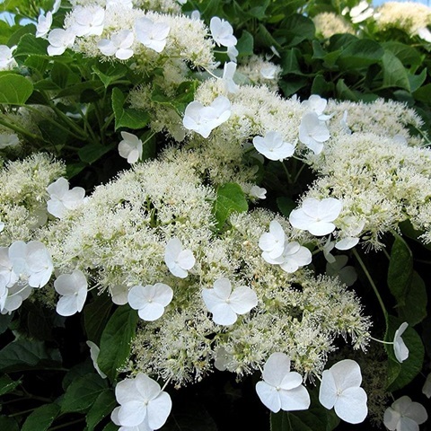 Гортензия черешковая - вьющийся листопадный кустарник. Побеги взрослого растения могут достигать высоты 8 м. Растёт быстро. Ежегодный прирост составляет 0,5-1 м. Листья: тёмно-зелёного цвета, широкояйцевидной формы, длиной 5-10 см, расположены на длинных черешках. Цветение начинается в середине июня и продолжается почти до конца августа. Цветки: белые или зеленоватые, душистые, собраны в щитковидные соцветия до 20 см в диаметре.