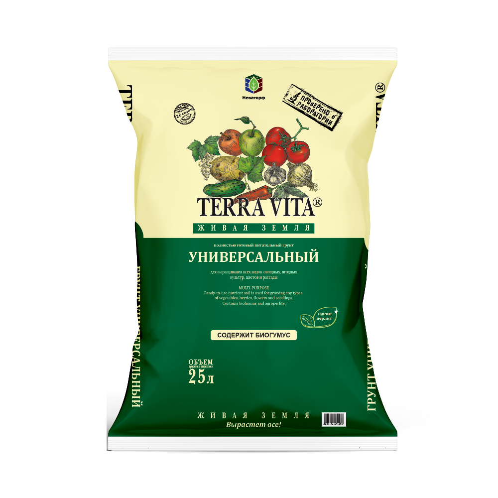 Полностью готовый питательный торфяной грунт для выращивания всех видов овощных, ягодных, зеленных культур, цветов и рассады.