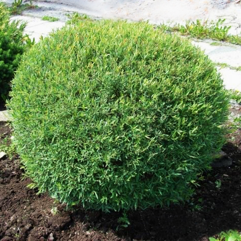 Ива пурпурная Нана имеет шаровидную крону. Высота куста около 1,5 м, диаметр – до 2 м. Шаровидная ива прекрасно вписывается в любой ландшафт. Ива Нана имеет удлиненную, узкую, светло-зеленую, голубовато-сизую или серебристо-зеленую листву. В холодное время листья становятся золотистыми. Почки вытянутые, длиной до 5 см, плотно прижатые к побегу, окрашены в красно-бурый цвет. Цветочные почки отличаются желтым цветом. Густоцветковые сережки цилиндрической формы с красноватыми пыльниками, достигают длины 2,6-2,8 см.Цветение ива пурпурная начинает прежде, чем распустится листва.