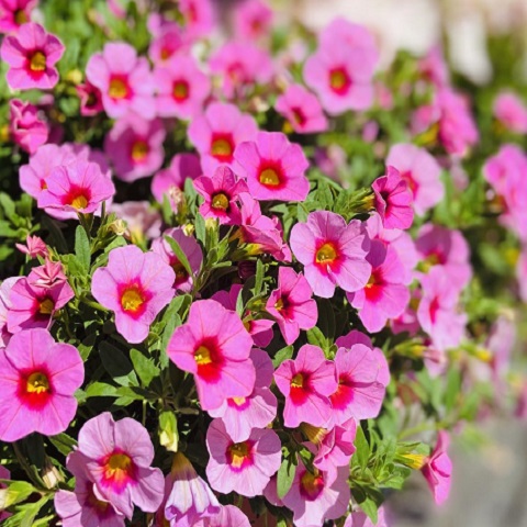 Цветки: мелкие, диаметром 2–3 см, ярко-розовые с насыщенным центром, по форме напоминают миниатюрные петунии.