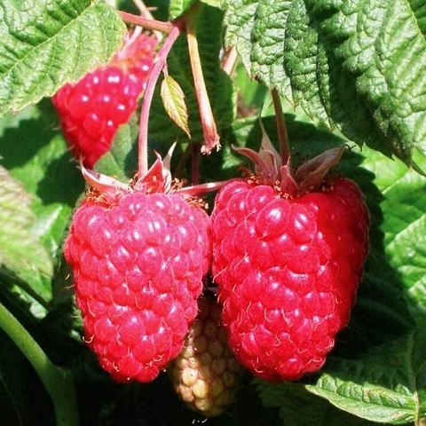 Ягоды: Крупные, массой от 6 до 12 г. Кожица ярко-малинового цвета, блестящая.Вкус спелой малины — сладкий, без кислоты. Назначение плодов — употребление в свежем виде, приготовление варенья и джемов, заморозка. Ягоды не имеют продолжительной лёжкости, поэтому их съедают либо перерабатывают сразу после сбора.