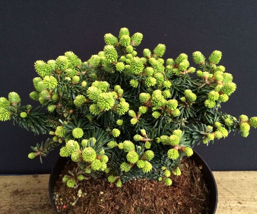 Шишки. Редкие, мелкие (2–4 см), фиолетово-коричневые, появляются на взрослых растениях.