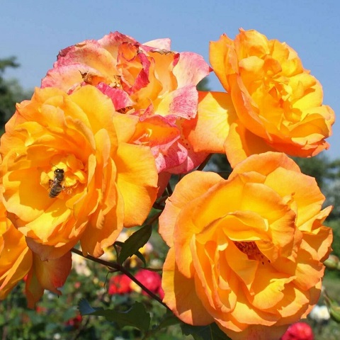 Применение в ландшафтном дизайне: используют как в одиночных, так и в групповых посадках. С их помощью можно создать розарий, живые изгороди. Прекрасно выглядят розы, высаженные группами из нескольких сортов, а также в композиции с другими красивоцветущими растениями. Используют в рокариях, английских садах, при украшении парадного входа в дом, садовых скамеек и беседок.