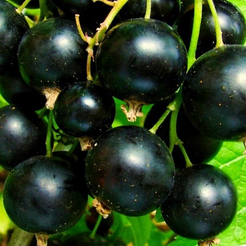 Ягоды: Крупные, диаметром до 2 см, массой до 9 г. В кисти формируется 6-12 ягод. Форма сливовидная. Окрас черный. Кожица тонкая, но прочная. Мякоть плотная, упругая, семян много. Вкус приятный, кисло-сладкий. Большое содержание витамина С (95 мг на 100 г). Ягоды очень ароматные. Назначение универсальное.