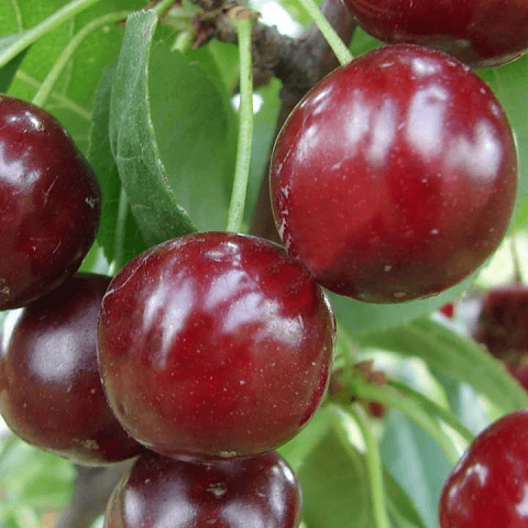 Плоды: Крупные, массой 4,5 г. Форма овальная. Окраска темно-бордовый. Кожица гладкая, средняя по жесткости. Мякоть темно-красная, плотная, очень сочная. Вкус отличный, кисло-сладкий.