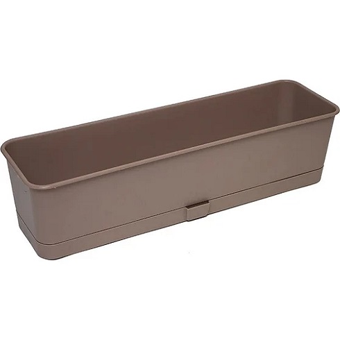 Особенности. В комплекте есть поддон, который защищает поверхность от влаги. Дренажные отверстия в дне обеспечивают отток излишков жидкости из почвы и питание при прикорневом поливе, препятствуют застою воды внутри и загниванию корней. Ящик изготовлен из плотного пластика, который не деформируется при наполнении грунтом.